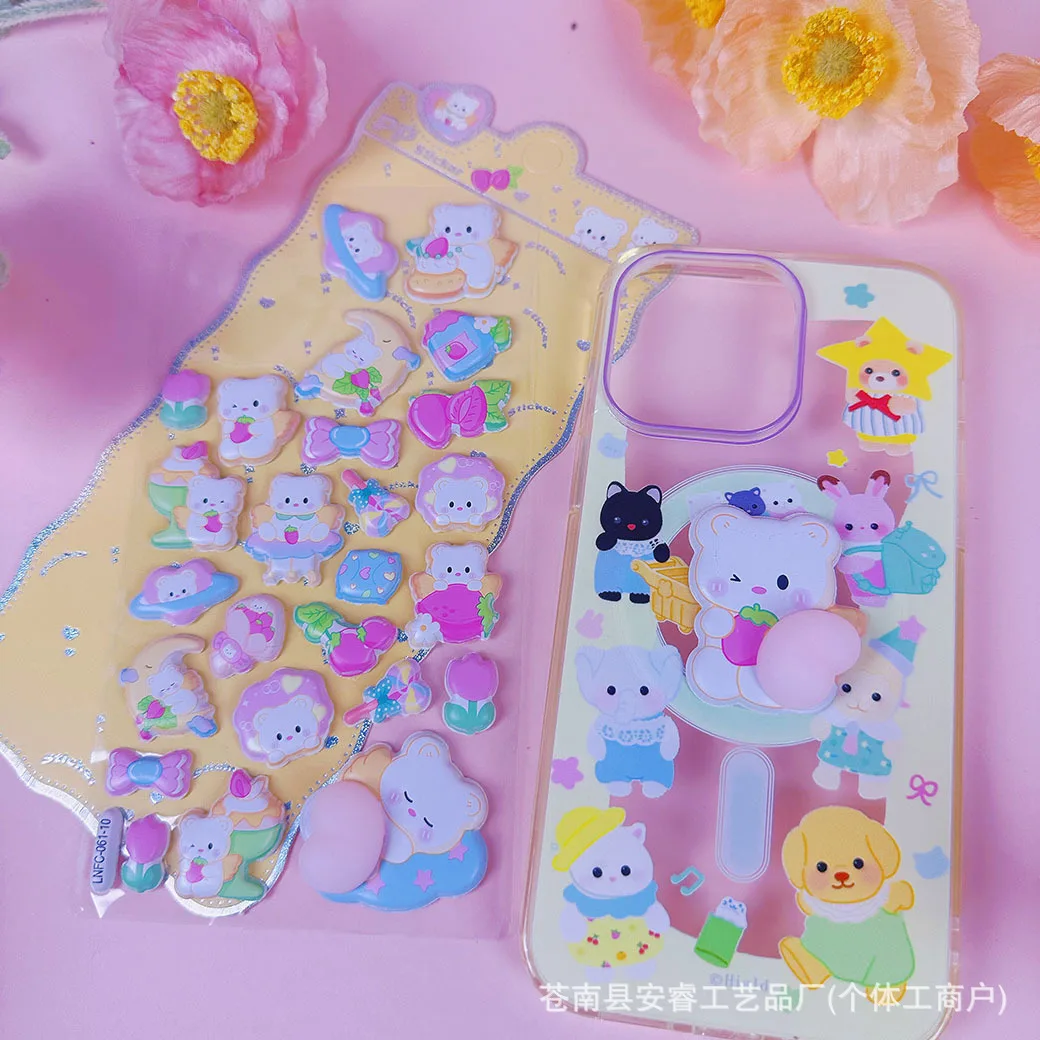 1 Sheet 3D Cute Animal Butt Stickers, Stress Relief Puffy Squishy Sticker for DIY Scrapbook Guitar Phone Case Laptop Decal